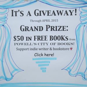 ♥ Don’t forget to sign on for the great GIVEAWAY through April 2015: Win $50 in free books from Powell’s of Portland! Support indie writer & bookstore.Click here! ♥